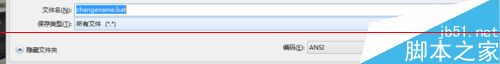 2、单击 文件 选择 另存为 文件名改为 changename.bat 保存类型:选择所有文件