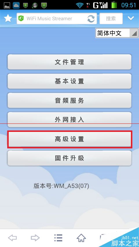 2、进入管理界面后点击“高级设置”;