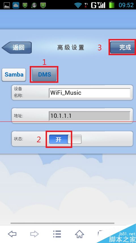 4、再选择“DMS”服务,使其处于打开状态,然后点“完成”保存设置;