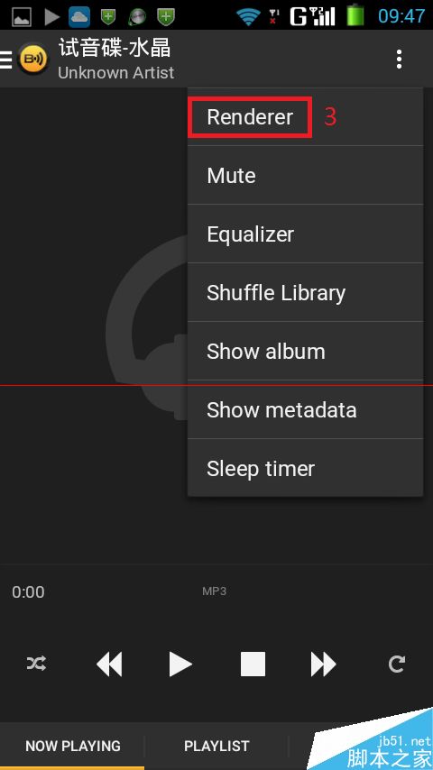 5、上面已经完成了赛米M2端的设置,在手机上安装“Bubbleupnp”播放软件,打开软件,切换到“NOW PLAYING”界面,点击右上角的三点;
