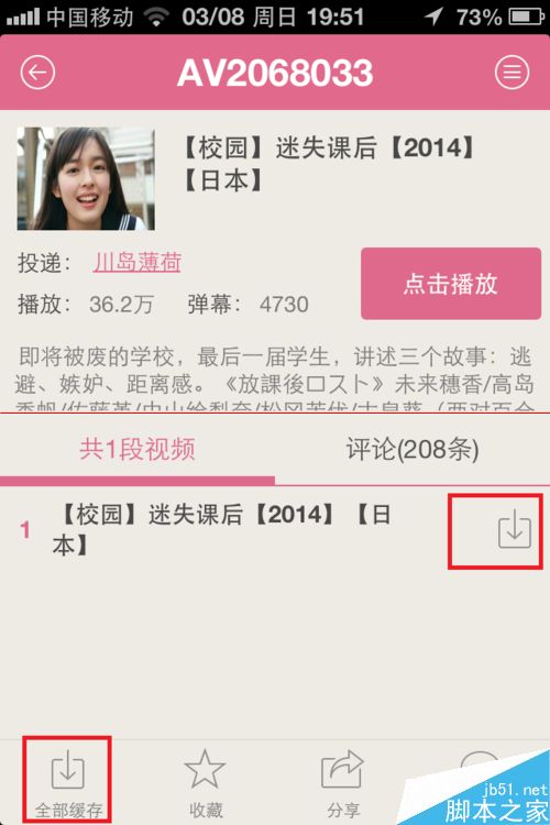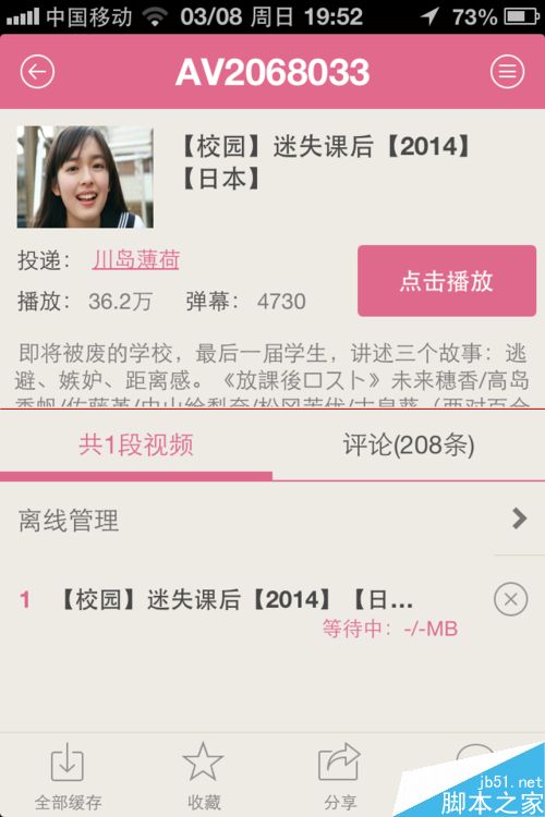 6、如果你觉得视频不错或者离线看,当然直播除外,那么可以点击视频的下载按钮或者“全部缓存”。然后在【我】-【离线任务】中查看该视频。