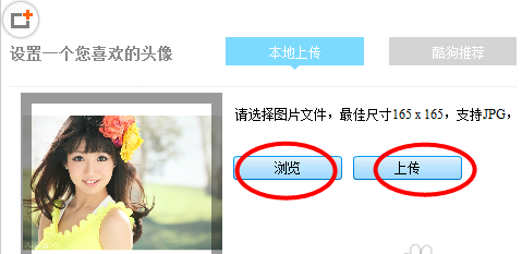 2、然后点击头像右侧的浏览按钮,选择一张图片,并点击上传按钮,如图所示: