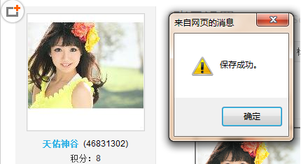 3、系统会提示我们头像保存成功了,我们可以看到已经更换好的头像和系统提示如下: