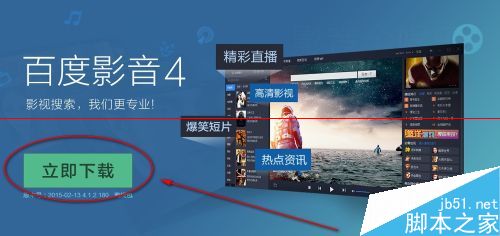 1、在浏览器进入百度影音的官网,找到下载链接,点击【立即下载】。