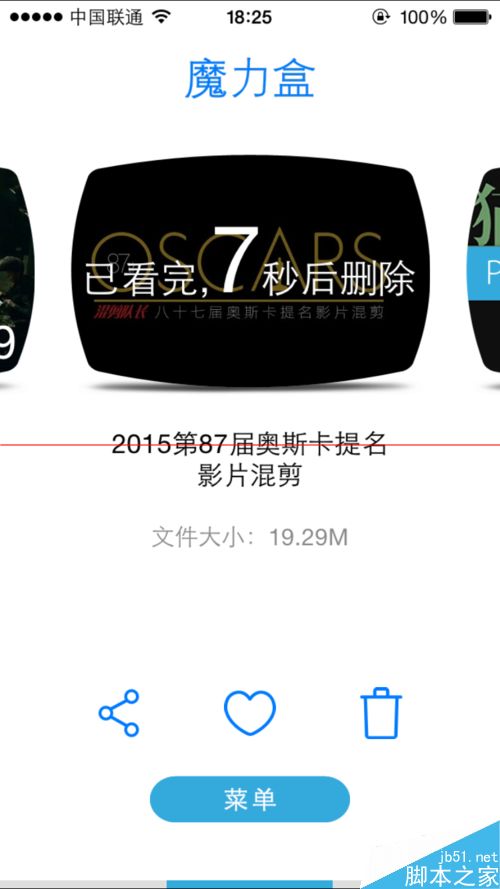 ”魔力盒”是一款在wifi环境下随机自动缓存三部影片的手机娱乐软件,三部短片大小均控制在100MB以内,看后即焚,自动清除缓存,不浪费存储空间;但许多朋友看到优秀的短片后,不想立即删除,这下问题就来了。如何让魔力盒中的视频看完后不自动删除?