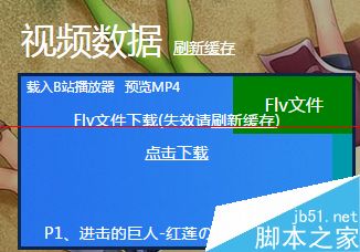 3、进入哔哩哔哩唧唧站 ,在视频数据区选择下载文件类型 点击下划线文字下载 下载失败点击刷新缓存