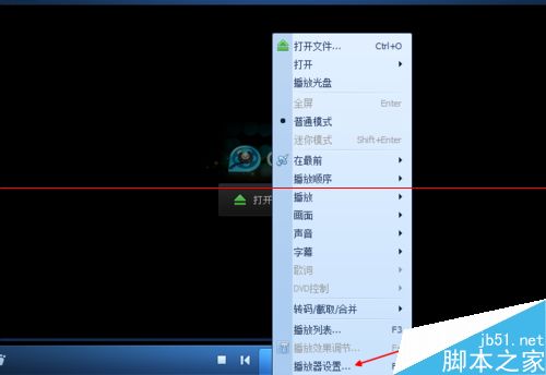 2、然后我们在空白处右键的,出现大量的对话框,我们找到下边的播放器设置