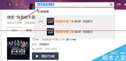 3、比如我们输入我是歌手,然后下边给我们列出我们需要的东西