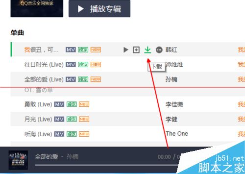 5、我们找到一首歌,把鼠标放上去,就出现下载的小箭头