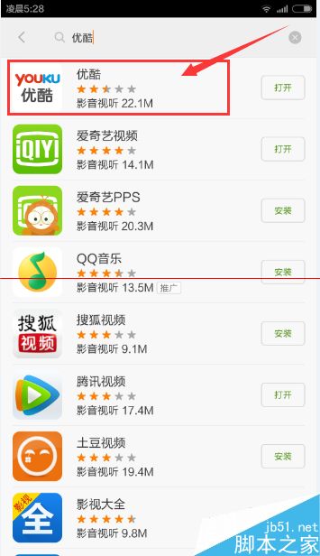 1、在手机上搜索优酷视频点击下载。