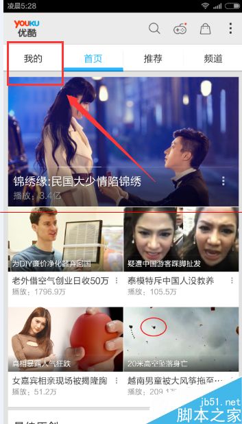 2、打开优酷视频后点“我的”。