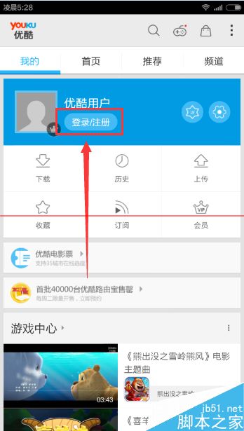 3、打开后点击登录或注册。
