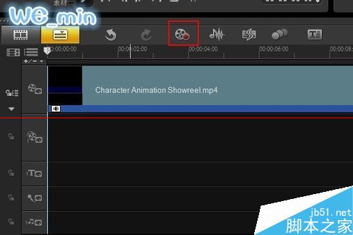 1、打开会声会影,导入视频素材后,点击功能面板上的 【录制】 按钮。