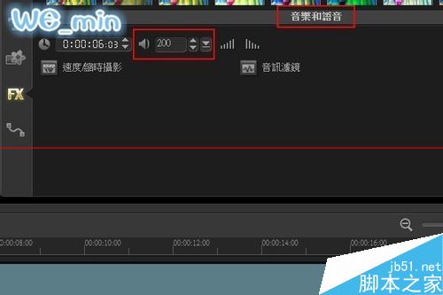 6、再双击音频素材,同样会打开选项面板,把音量加大一些,这里调整到200。再次整体试听一下,如果还不满意就再重新调整音量。直到满意为止。最后保存合成新的视频文件就可以了。