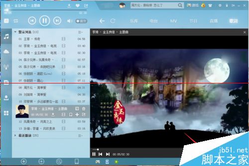 2、可以通过左侧的播放列表或右侧菜单栏里的MV功能找到一首支持MV功能的音乐播放,此时在播放窗口下方可以看到弹幕功能已关闭,如下图所示。