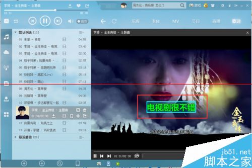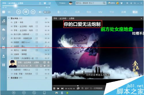 6、然后点击【发送】按钮,输入的内容即可出现在MV播放窗口底端,如下图所示。
