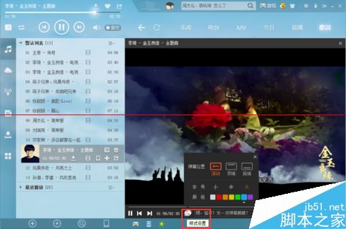 4、点击弹幕左侧的【样式设置】按钮,可以设置字体的显示位置,字号,颜色等信息,如下图所示。