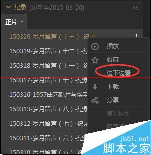 3、找到您要观看的影片,然后在影片名字上点击鼠标右键,选择【边下边看】