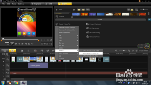 下面就只需要导出我们的视频文件了:点击第三个分享按钮,选择第一个选项,然后创建一个mpeg-4视频。