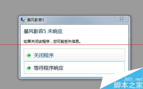 1、当出现“暴风影音”未响应的提示界面时,我们可以通过点击“关闭程序”按钮,将暴风影音播放窗口强制给关闭。