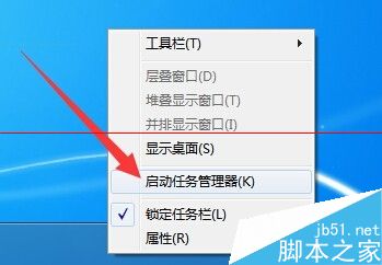 2、其实右击任务栏,从弹出的右键菜单中选择“任务管理器”项,打开“任务管理器”。