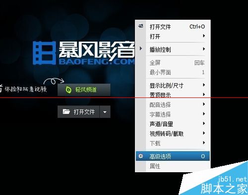 5、此外,我们可以通过右击暴风影音播放窗口,从弹出的右键菜单中选择“高级选项”项进入。