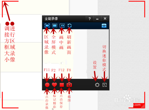 录制过程可以鼠标操作,当然,也可以键盘操作:F11录像 F2标记精彩时刻F12点击保存 F8截图 用鼠标还是键盘,依个人习惯。