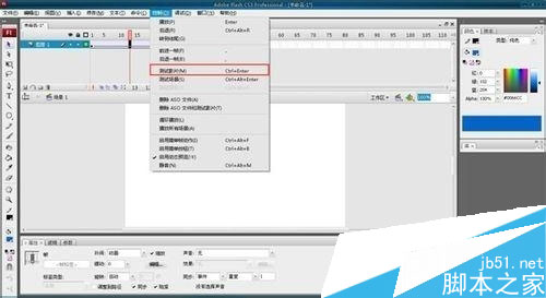 完成步骤之后,接下来我们要测试一下是不是有效果,选择控制-测试影片,我们看到了场景中在从左往右移动,动作成功完成。