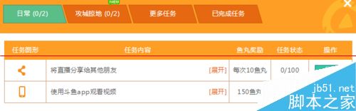 3、任意点击一个直播间,左下角有个任务,每天都有日常任务赠送鱼丸,关注直播间,用手机客户端也能获得鱼丸。