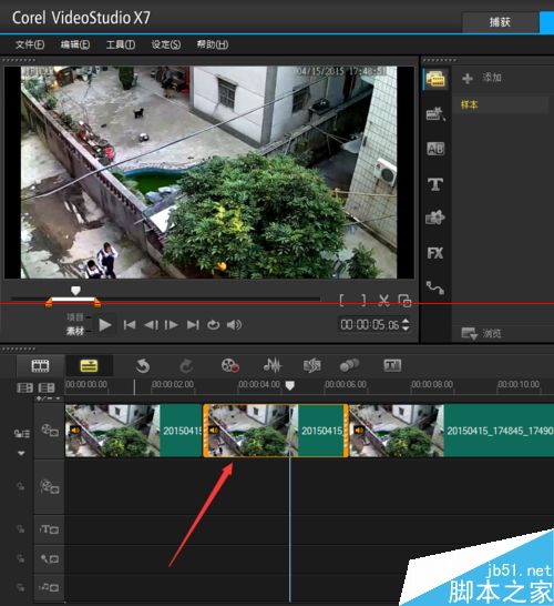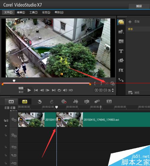 11、继续播放,刚才不喜欢的片段的地方,如果时间长可以直接吧播放光标拉过去,进行定位,点击剪刀图标进行剪切;
