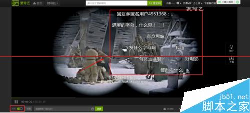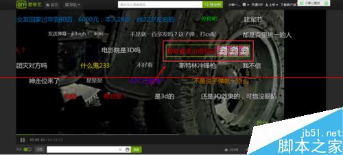 3、点击弹幕右侧的开关按钮可以开启弹幕功能,此时视频播放界面会出现很多网友互动文字及图片,如下图所示。