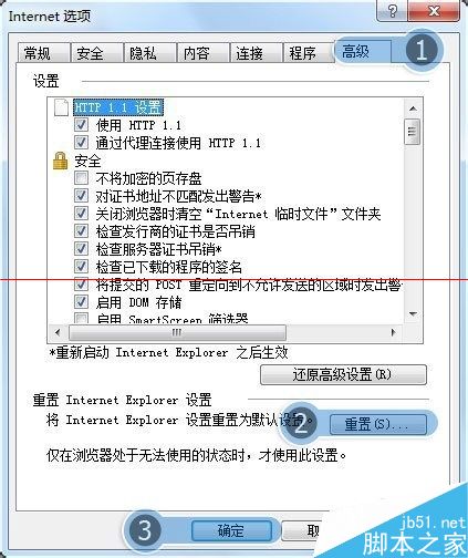 方案四:重置IE(说明:如果您使用网络代理或者对浏览器有特殊设置,请保存设置后再进行操作)