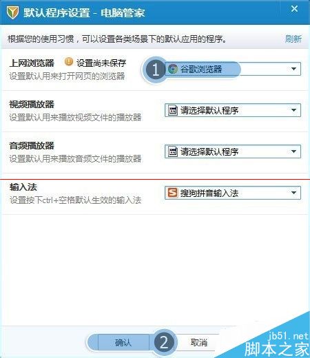 2.打开电脑管家→点击【工具箱】,点击【默认程序设置】→在上网浏览器列表中选择【谷歌浏览器】→点击【确认】: