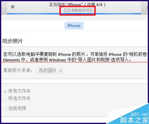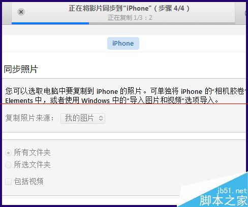 3、不管是音乐、视频还是APP,都会在这个时候进行复制,如果同步的文件个数比较少,而且不大的话,会直接显示复制文件,不会有进度条