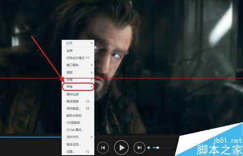 1、打开视频后,右键画面,选择声音。