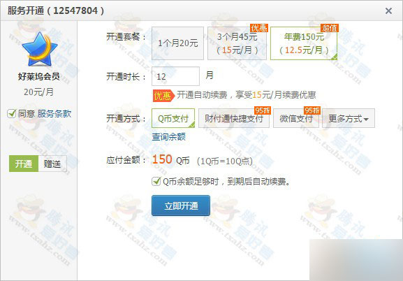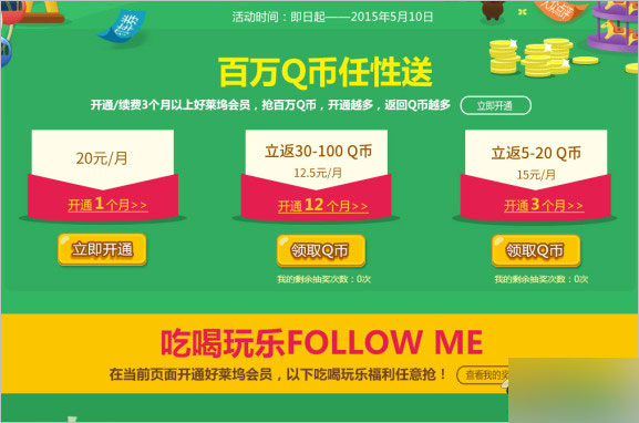 2、在当前页开通好莱坞会员可参与返Q币活动,一次性开通3个月可领5-20Q币,一次性开通12个月可领30-100Q币;