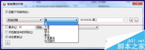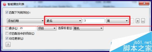 7、如下图所示,显示最近3周添加的文件,过了这段时间的文件就不会在这个播放列表内了,还可以设置成显示某个日期后添加的文件等