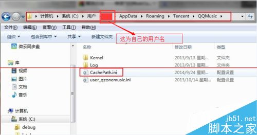 5、发现没有CachePath.ini文件的很好办,正在C:\Users\XXXX\AppData\Roaming\Tencent\QQMusic下创建一个文本文档,更名为CachePath.ini(这里要注意文件的文件可扩展名*.ini),打开输入以下内容保存即可。