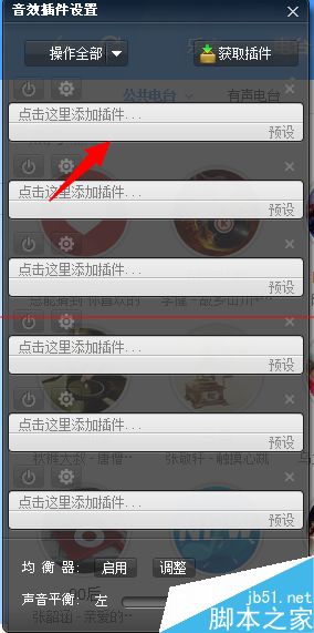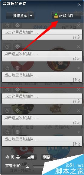 3、进入“音效设置界面”,点击右上方的【获取插件】