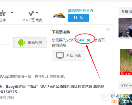 下载之前优酷会提示你安装一个优酷客户端,有了它你才可以真正开始执行下载任务,怎么下载安装就不介绍了 大家应该都会,点击pc客户端进入下载页面直接下载就好了,下载完成点击运行文件。