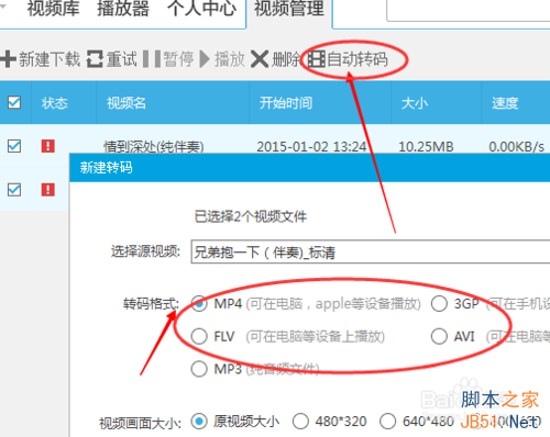 然后打开视频管理,下载后的视频会出现在这里,在这里可以对视频进行再次的编辑,转成你想要的视频格式,,有多种格式可以选择,适合在各种媒体设备上播放,好了,优酷视频的下载基本就这些,希望大家能够看的懂