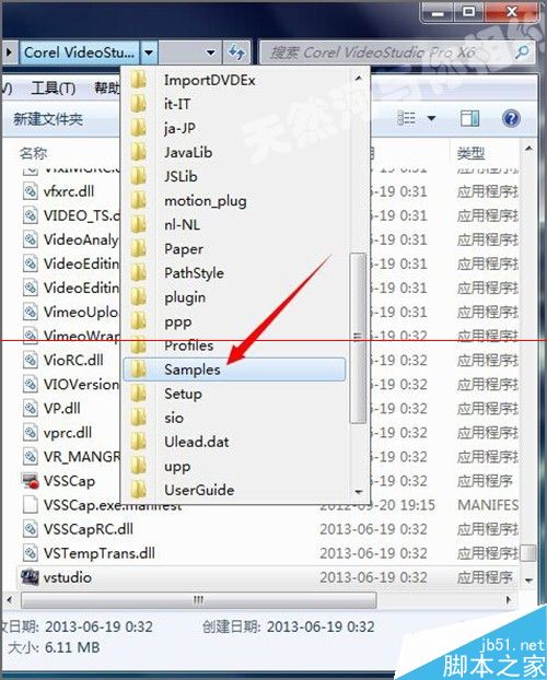 9、在它的下拉小三角点击之后,我们在它的列表中选择Samples的文件夹。