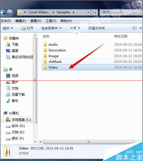10、双击打开Samples的文件夹后,在弹出的面板中我们选择打开Video的文件夹并打开。打开之后通过调整它的下拉滑块来选择你想要的动画效果。