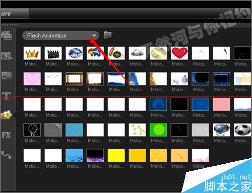 3、当我们点击了Flash Animation(Flash动画)之后,就会在它打开的界面中看到它自带的许多动画效果。