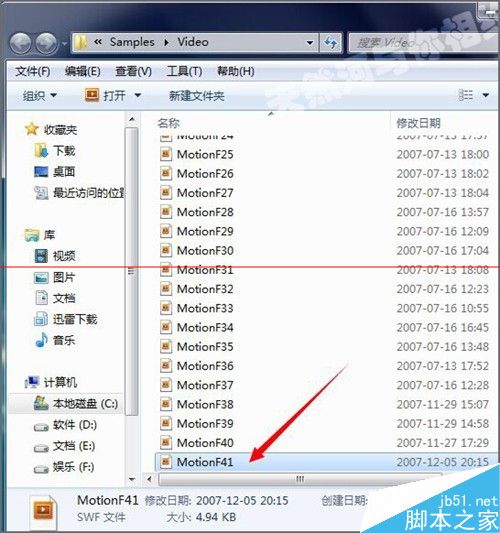5、点击之后,就会看到它的面板里面有许多的媒体文件。MotionF41就是我们刚才点击的那一个动画效果。