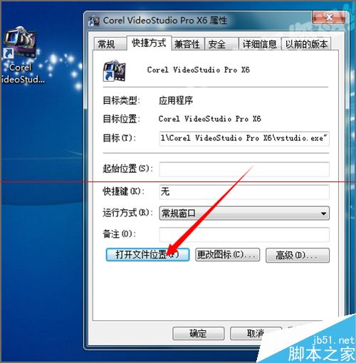 7、当然如果不想通过上面的方法进行查看的话,也可以在会声会影x6的软件启动图标上点击右键打开它的属性,然后选择打开文件位置。