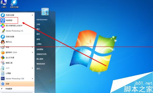 1、如图所示点击开始之后,点击电脑管家,进入电脑管家主界面。