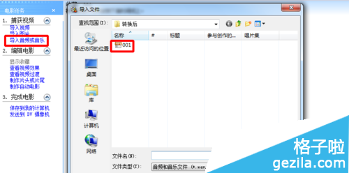 10、再把放大后的音频导入。单击导入音频或音乐,找到文件,单击导入。