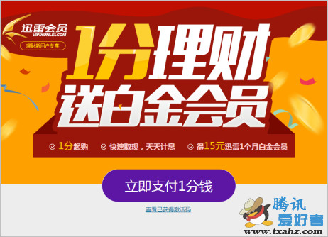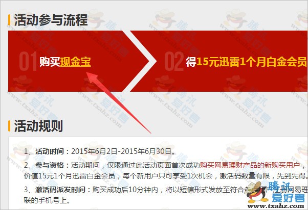 2、参与资格:活动期间,仅限通过此活动页面首次成功购买网易理财产品的新购买用户,买就送价值15元1个月迅雷白金会员,每个新用户只可享受1次机会,激活码数量有限,先到先得。