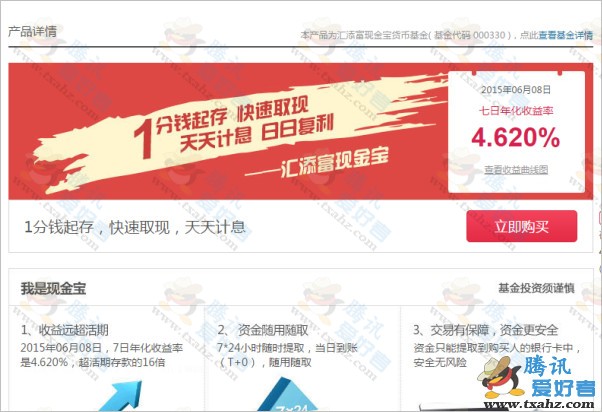 1、注册成功后,返回活动页面,点击“购买现金宝”。【不要乱点,否则不是1分钱】
